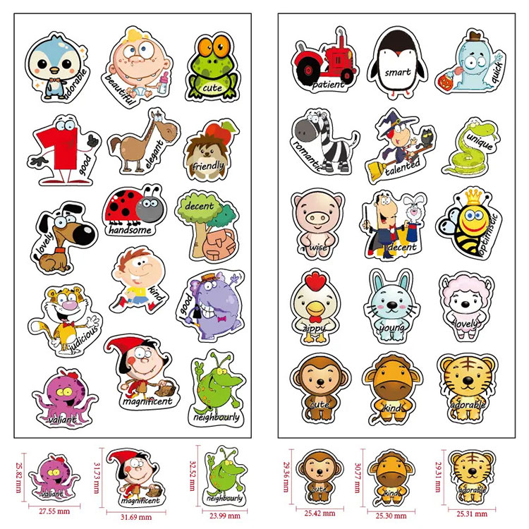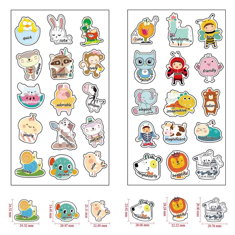 Onscartoon beloningsstickerszijn ontworpen met talloze schattige, doordachte berichten, leuke dieren en ontwerpen, en schitterende kleuren om ze aantrekkelijker en spannender te maken voor kleuters tot basisschoolleerlingen.