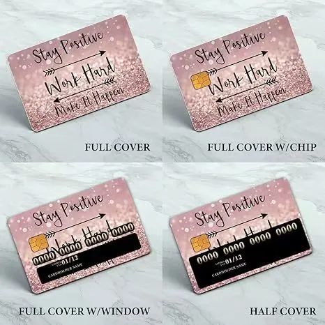 Bescherming: Creditcard-coverstickers kunnen het oppervlak van de kaart beschermen tegen krassen, slijtage en kleine schaafwonden, waardoor de staat van de kaart en de duidelijkheid van de afgedrukte informatie, zoals het kaartnummer, de vervaldatum en de naam van de kaarthouder, behouden blijven. Sommige stickers bieden mogelijk ook een zekere mate van bescherming tegen vuil en vocht.