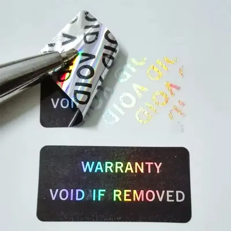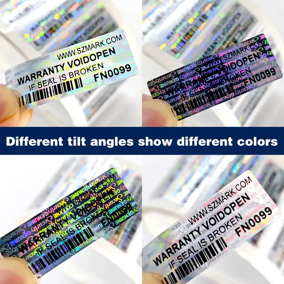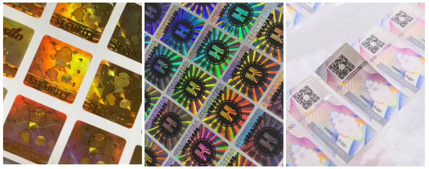 Hologram-veiligheidslabelsonder licht 3D-, dynamische of meerlaagse optische effecten weergeven, die zonder professionele apparatuur moeilijk te reproduceren zijn. De meeste zijn ontworpen met manipulatiebestendige eigenschappen: ze breken, laten resten achter of vertonen een "VOID"-markering wanneer ze worden verwijderd. Veel voorkomende materialen zijn polyester of film, tijdens de productie geïntegreerd met holografische folies of diffractieroosters.
