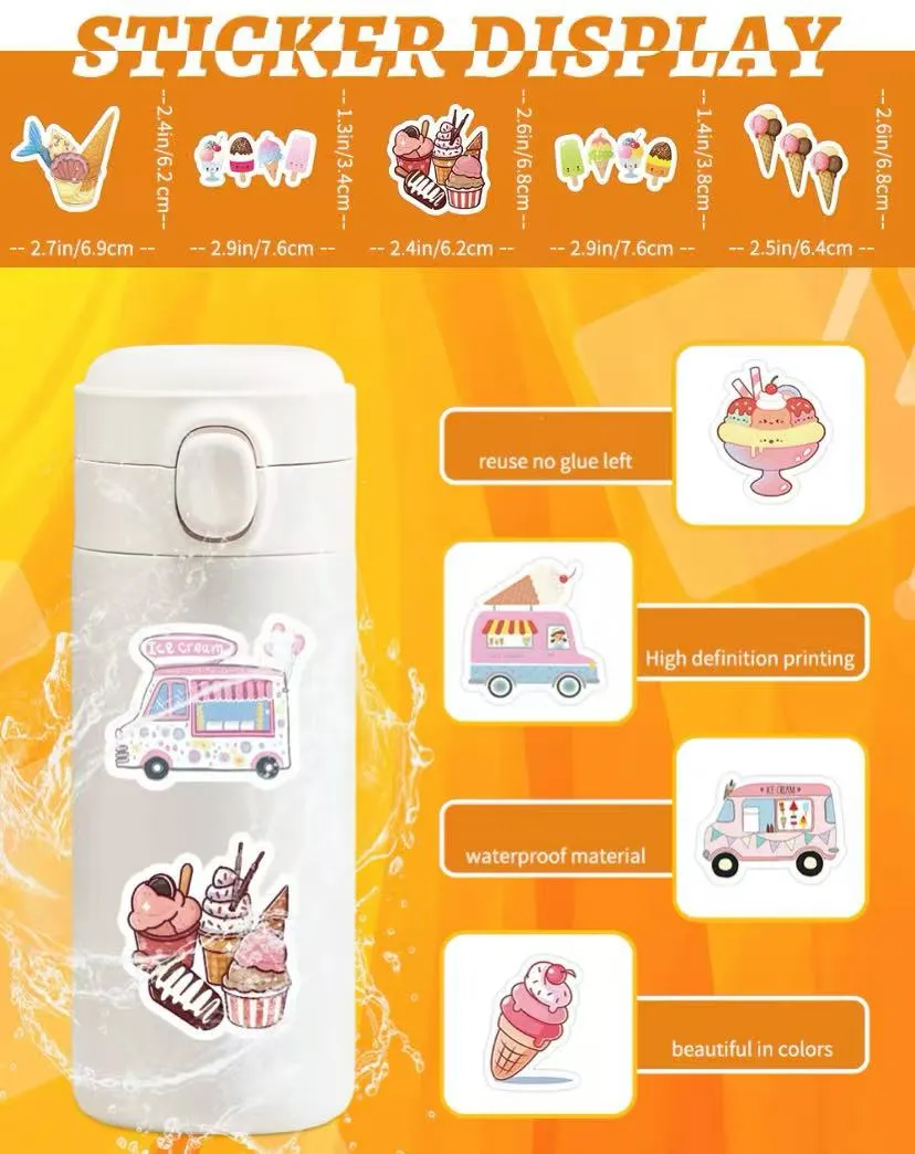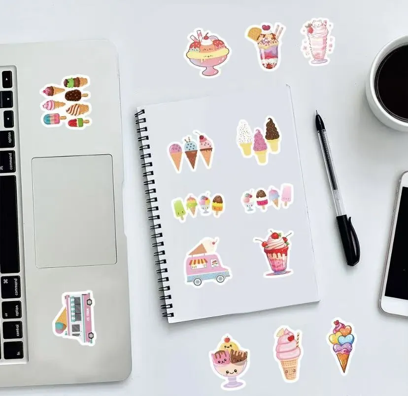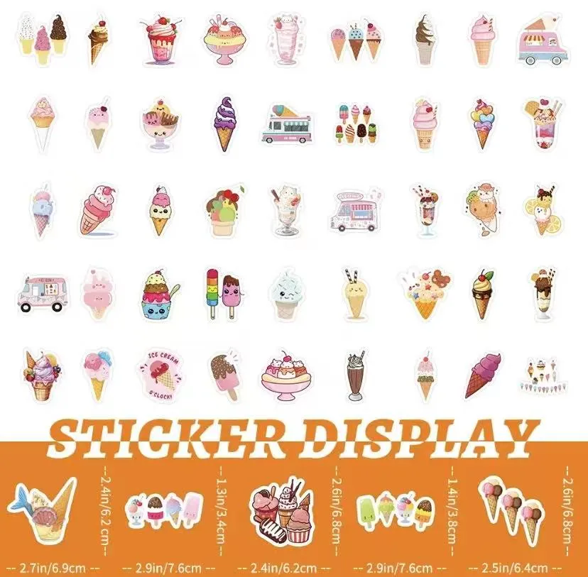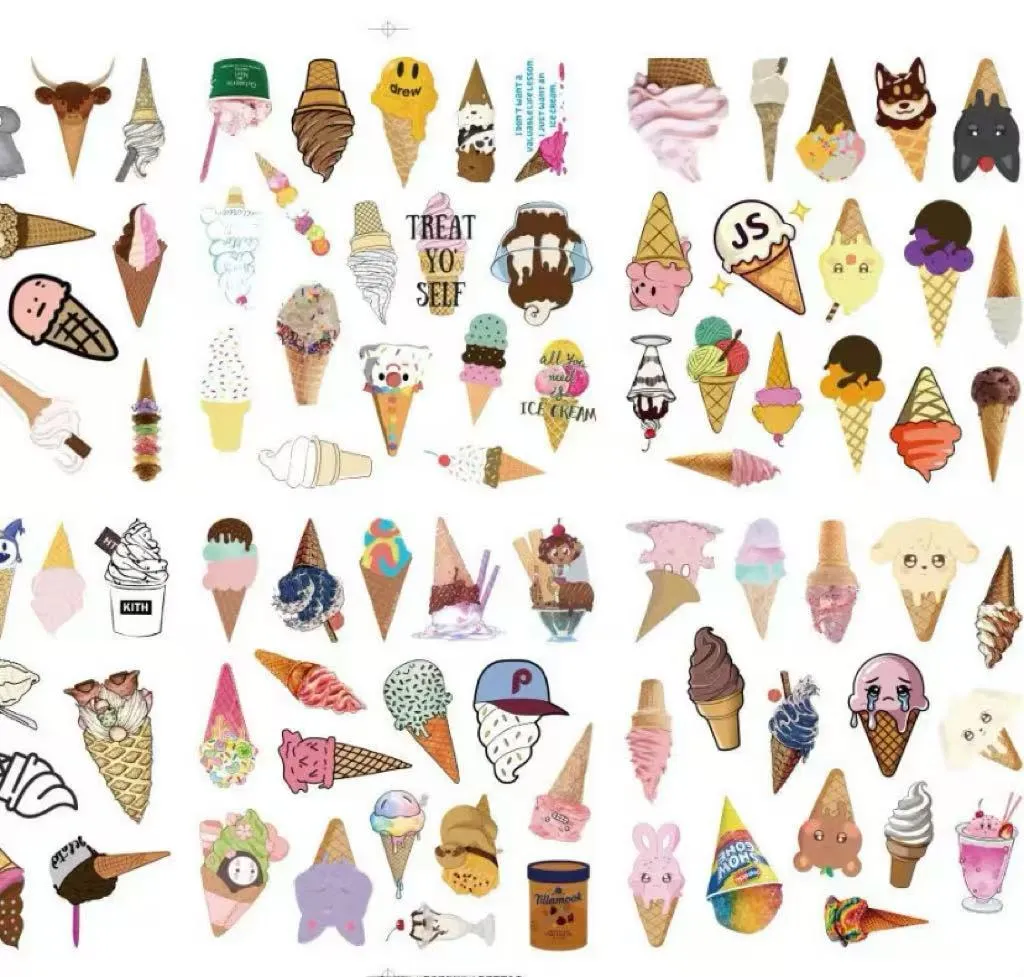 Deze ijsstickers geproduceerd door JoJo Pack. Het beschikt over verschillende ijselementen en elke sticker lijkt een cool en zoet aroma uit te stralen, waardoor je items onmiddellijk worden geïnfuseerd met zomervitaliteit.