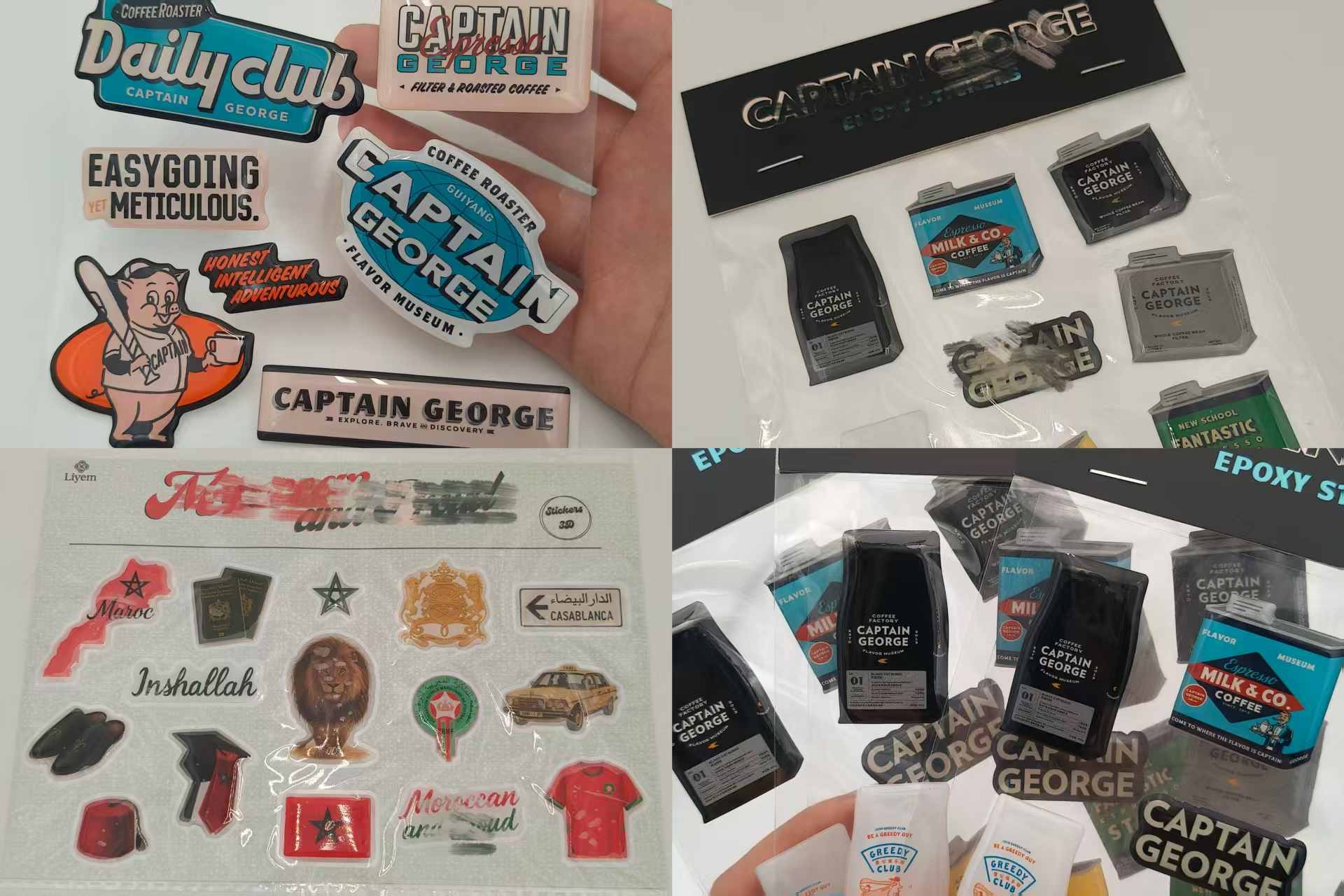 De op maat gemaakte epoxyharsstickers van deJOJO-pakketnaar Frankrijk zijn gestuurd.