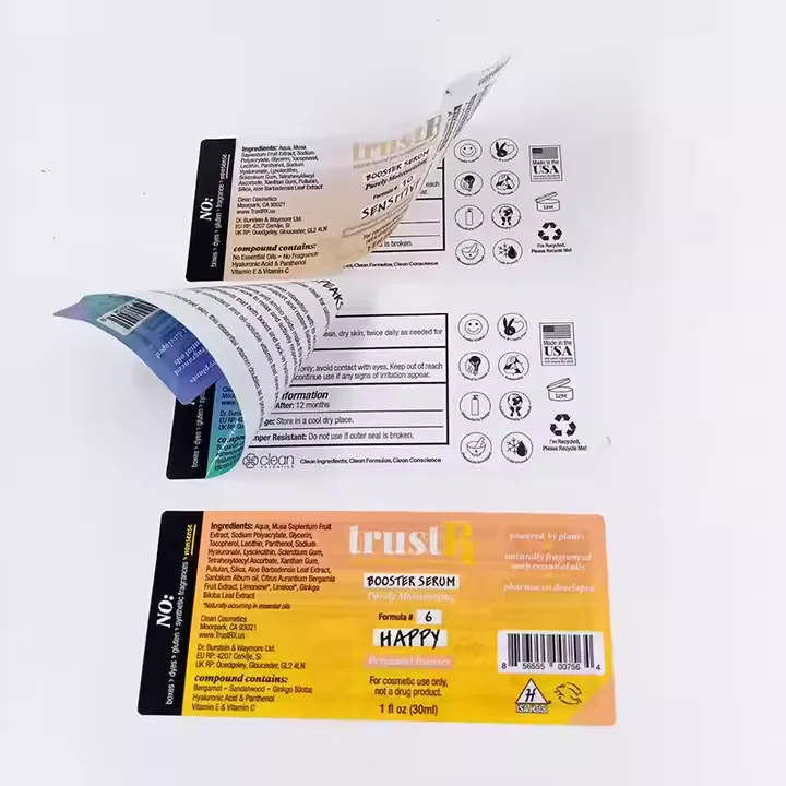 3. Labels met meerdere lagen flip-type: door de eerste laag van het label te openen, hebt u toegang tot de verborgen inhoud eronder, net zoals het draaien van pagina's in een boek.