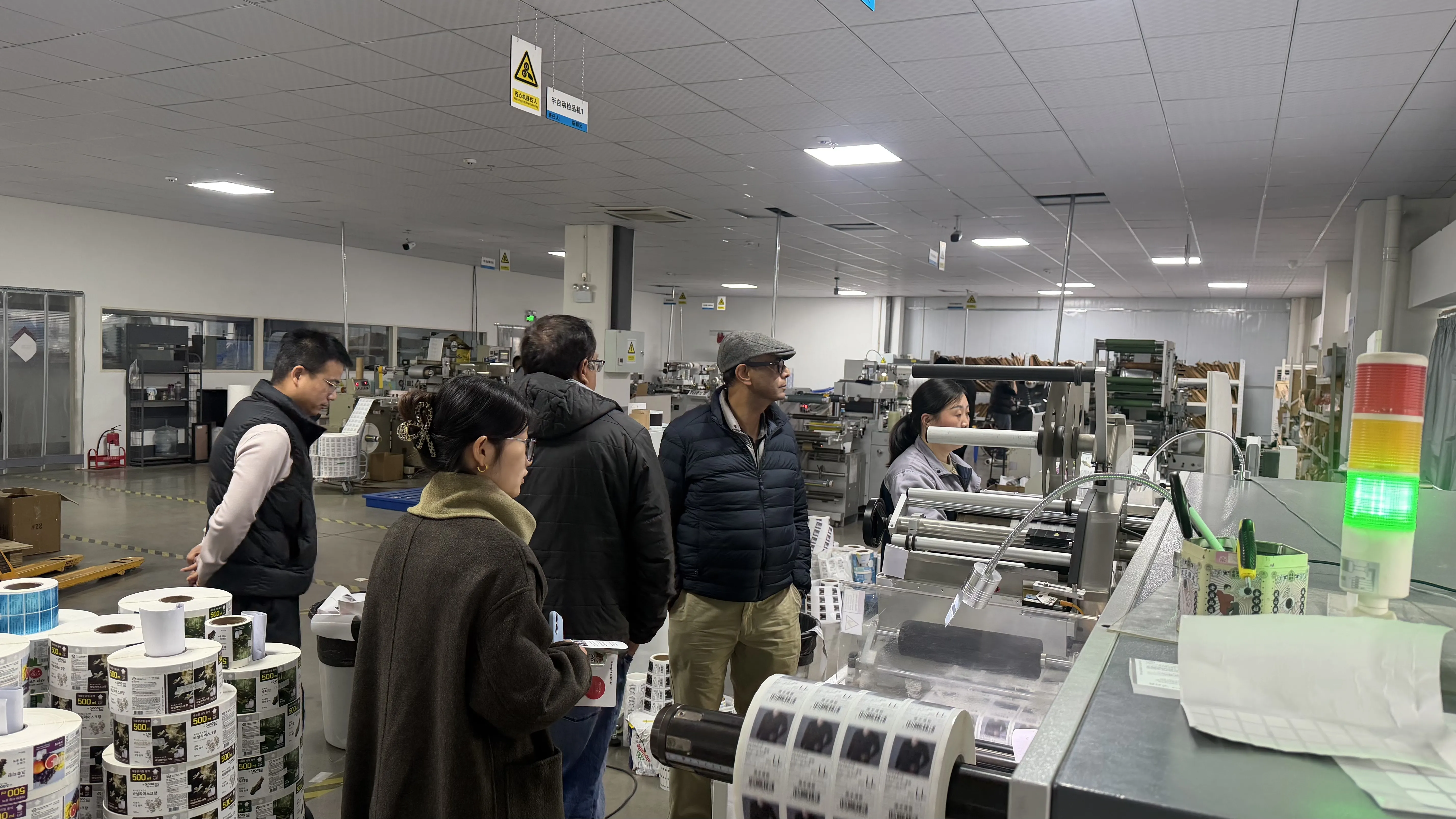De klanten concentreerden zich op onze geavanceerde printapparatuur, het gestandaardiseerde productiebeheersysteem en het strikte kwaliteitscontroleproces, en vroegen gedetailleerd naar kernkwesties zoals productmaterialen, productie-efficiëntie en aanpassingsvermogen. Het begeleidende personeel antwoordde geduldig en demonstreerde ter plaatse het productieproces en het eindproducteffect van verschillende labelmonsters.