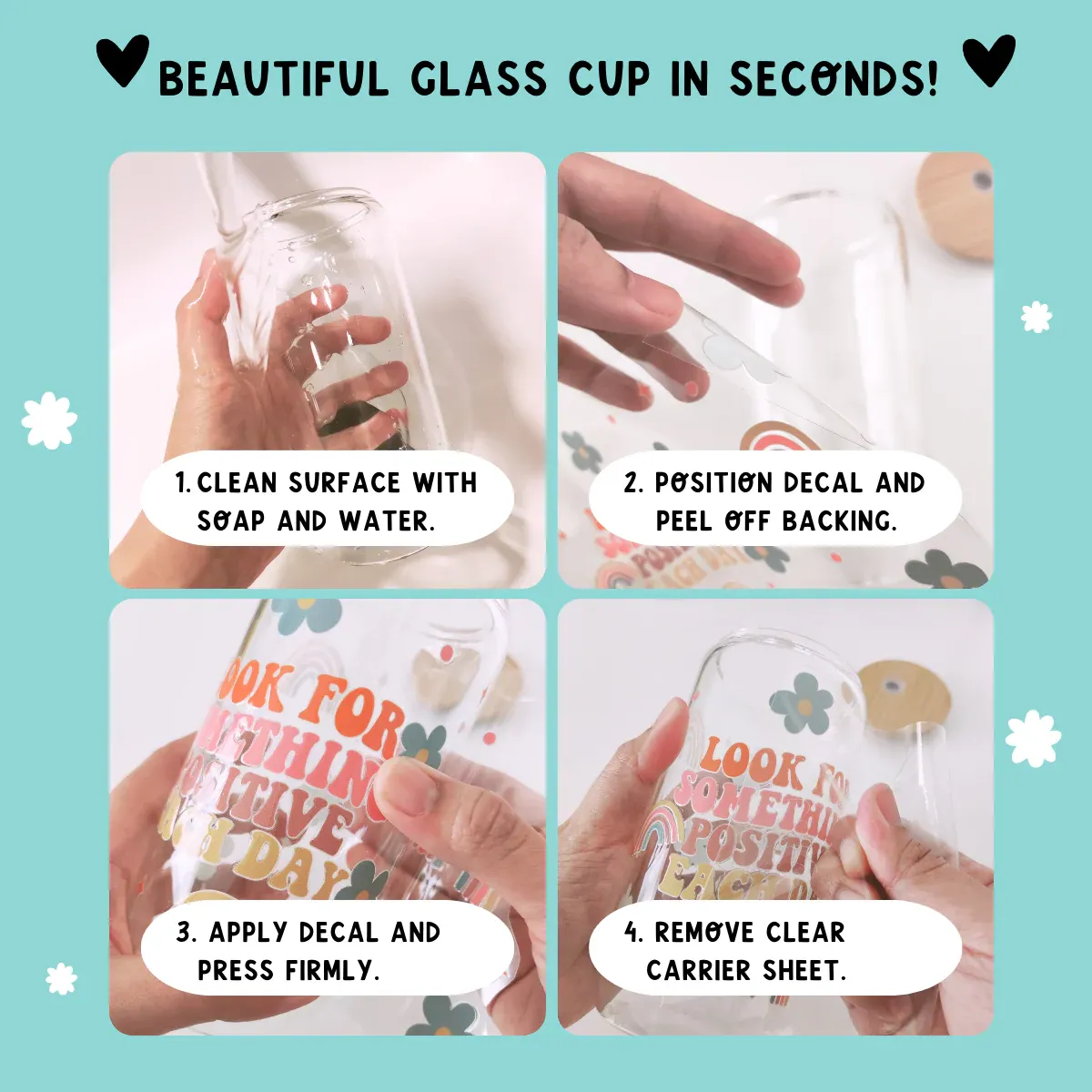 1. Zorg ervoor dat het oppervlak van de glazen beker van 16 oz schoon, droog en olievrij is. Veeg voorzichtig af met alcoholdoekjes of een pluisvrije doek om stof, watervlekken of vet te verwijderen.