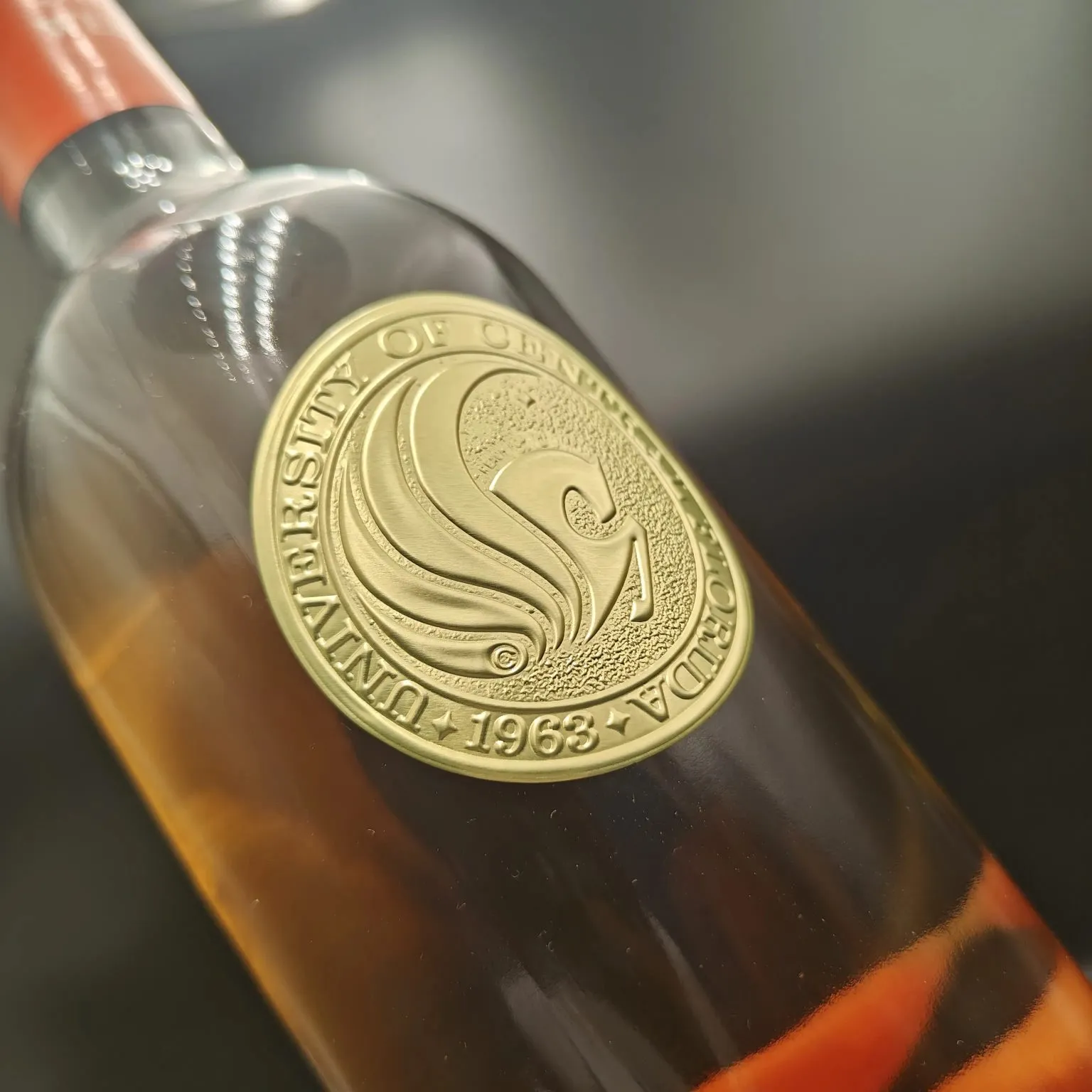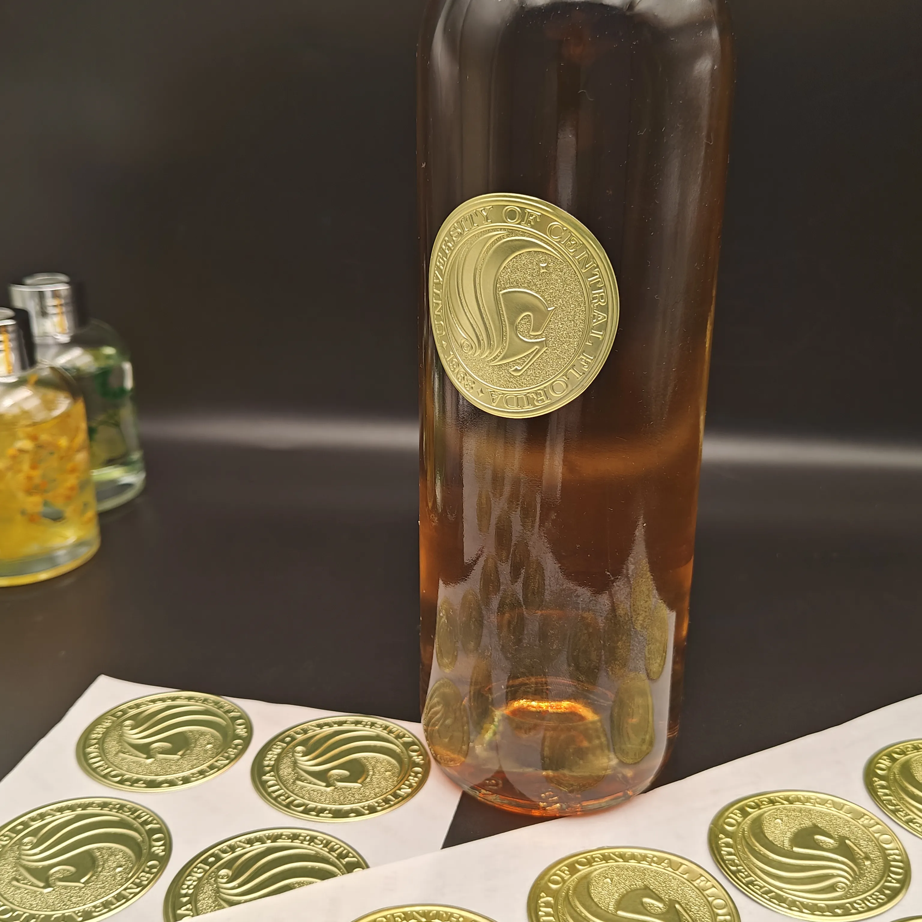 De ronde vorm past perfect bij het gebogen glazen oppervlak van wijnflessen, en de reliëf-/foliedetails kunnen merklogo's, vintage jaren of productseries op de fles benadrukken, waardoor de verpakking meer in het oog springt.