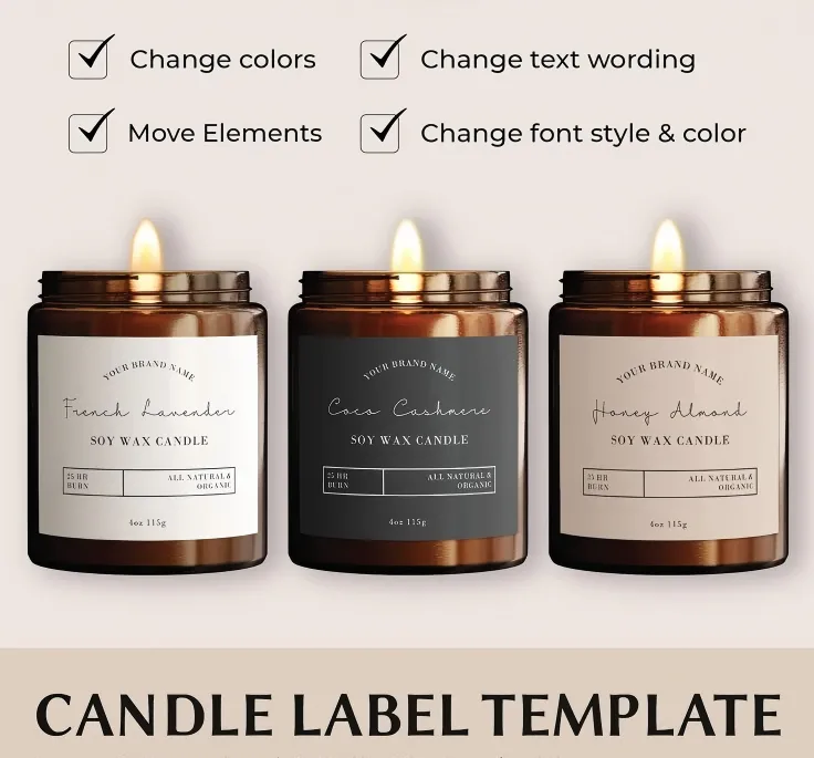 PVC:Biedt uitstekende duurzaamheid en weerbestendigheid. PVC geurkaarsenlabels kunnen transparant of gekleurd worden gemaakt. Houd er rekening mee dat PVC niet biologisch afbreekbaar is en dus mogelijk niet geschikt is voor milieubewuste merken.