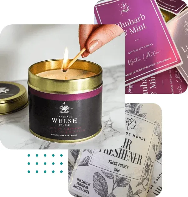 Geprofileerd: hierbij wordt het label in aangepaste vormen gesneden in plaats van in standaardrechthoeken. Geprofileerde labels vallen op op kaarsenpotten en sluiten aan bij unieke merkidentiteiten.